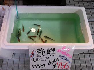 ニシキゴイの『大正三色』と『白写り』 (10~12cmくらい)を泳がせ、春になり皆様の胸の中にフツフツと沸いてきている”飼育欲”に追い風を吹かせます。(笑)