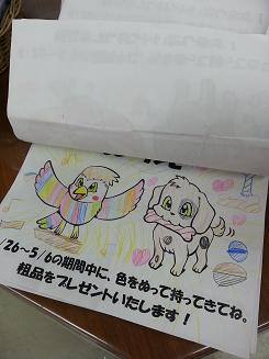 セール開始前に店頭にて配布させて頂きました『ぬりえ』を塗って持って来てくれたお子様に粗品プレゼント!というイベント。(※ぬりえの配布は終了しております)