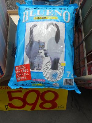 人気の猫砂!「ブルーノ」!おしっこで濡れた所が青くなるので、どこを捨てればいいか一目瞭然