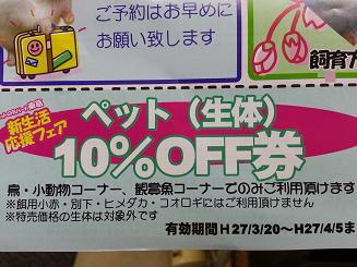 今日・明日・明後日の3日間はお魚コーナーの生体(爬虫類・両生類・水草を含む)すべてレジにて10%OFF!!※一部対象外もございます。