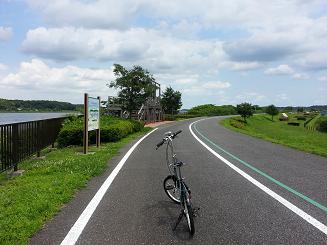 サイクリングロードをクサガメさんが横断してるー!(笑) 危ないから、このカメさんが行きたかったんだと思われるあたりまで、ワープさせてあげました