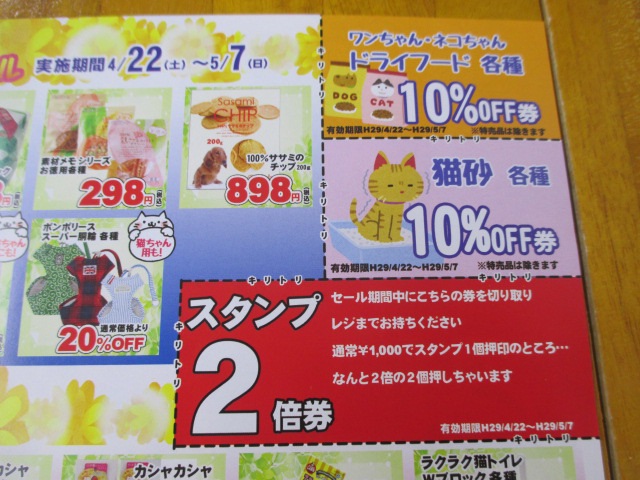 いつもよりも色々お安く買えるだけでなく、ポイントも2倍に出来るとは!!どこまでお客様への感謝の気持ちを強く示すんだ東葛ペット!!!!