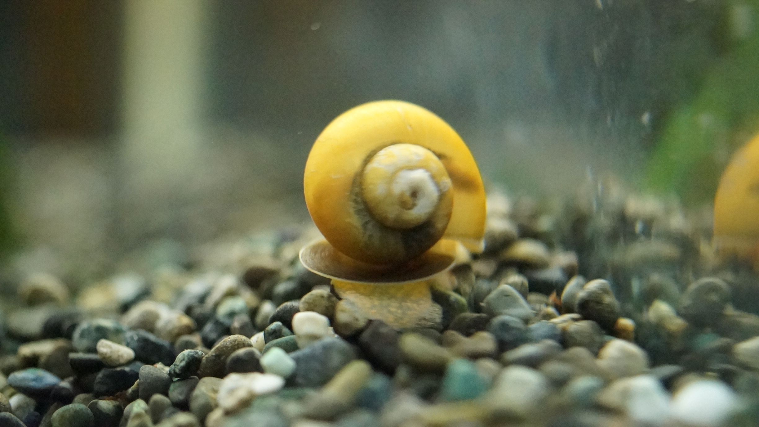 黄色くてかわいい巻貝、「ゴールデンアップルスネール」