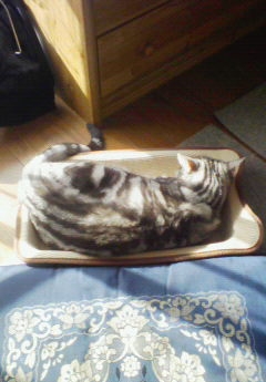 ウチのしゃけは最初私があらかじめ撒いておいたマタタビ粉末をいとおしそうに目を細めてさんざん舐め、その後トレイの中で何回もぐりんぐりん右に左に寝返りを打ち、そしてバリバリとトレイで爪を研いだ後・・・