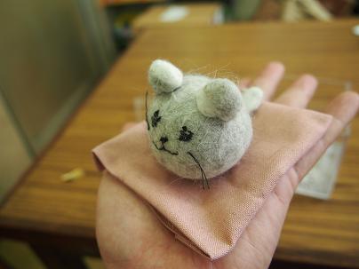 これはですね、ネコちゃんを飼ってるパートさんが、お家のネコちゃんの抜け毛をこういう道具で取ってあげて、その取れた抜け毛でもう1匹小さなネコちゃんを作ってみたんですって
