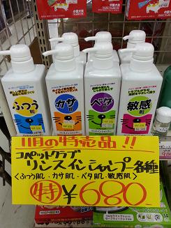 犬&猫用リンスインシャンプー! ホントはシャンプーとリンスを別々にご用意頂くのをオススメしますが、どうしても1本で済ましたい!と言う方に。