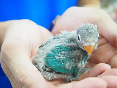 まだウブ毛だらけでかわいい!ブルーボタンインコのヒナ!