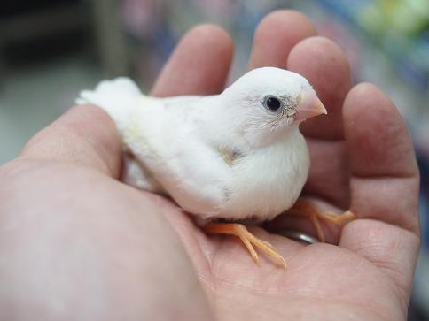白キンカ鳥のヒナ!1羽だけです! 手乗りキンカ鳥のヒナは東葛ペットの名物!なかなか他店では手に入りません。