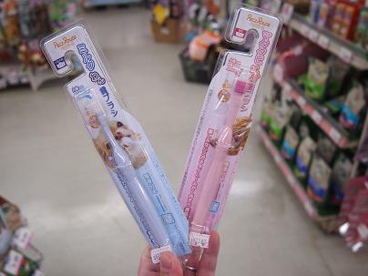 この歯ブラシは歯ブラシ自体に、ワンちゃん用にはミルクを、ネコちゃん用の方にはマタタビを混ぜ込んで作ってあるんです!