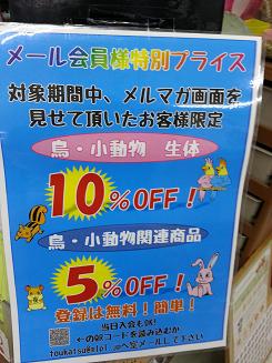 鳥・小動物生体は表示価格より10%OFF!!用品は5%OFF!!でお買い上げ出来ちゃう!!