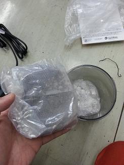 すぐ使えるとは言っても、各種ろ材はこのようにビニール袋に入っておりますので、これを袋から出してセットしなくてはいけません。ご注意下さい、過去に弊社にもプロなのに、袋から出さずにセットしてしまった者もおりましたので。(←先程の〇ッパイ上司)