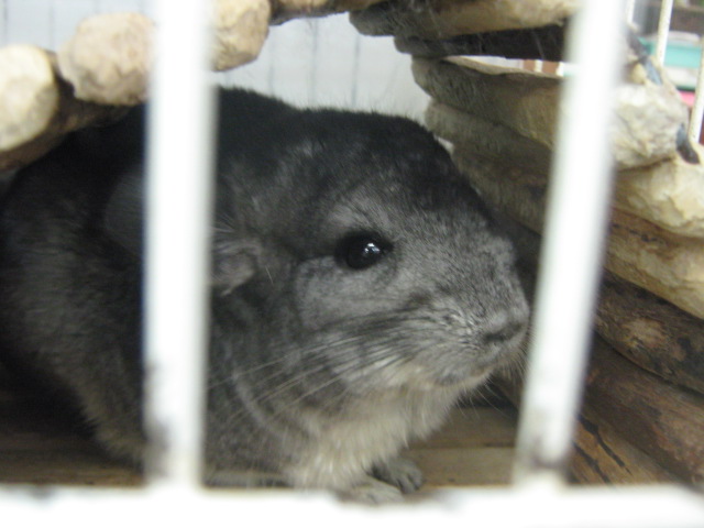 来たばかりでビクビクしていて、かわいそうだからケージから出さずにケージ越しに撮りました。チンチラちゃんです。ふっかふかでかわいいですよー