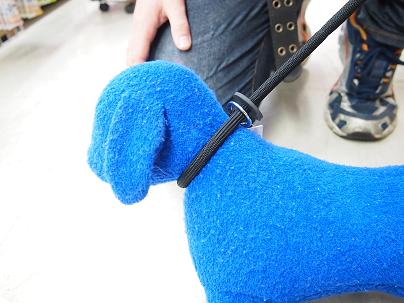 まるっきりクッションケンネルリードと同じ仕組み。輪になっているので、ワンちゃんの首にかけ、