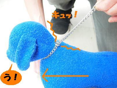 輪っかの部分がキュッ!っと締まり、ワンちゃんも苦しいので、引っ張るのをやめるという寸法です。