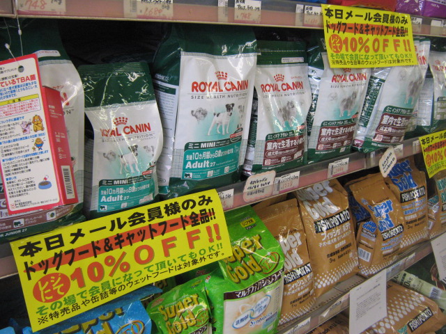 で、もうご存知だとは思いますが、柏店では今月末までドッグフード&キャットフード全品10%OFFいたします!!(特売品や缶詰などのウェットフードは対象外です)