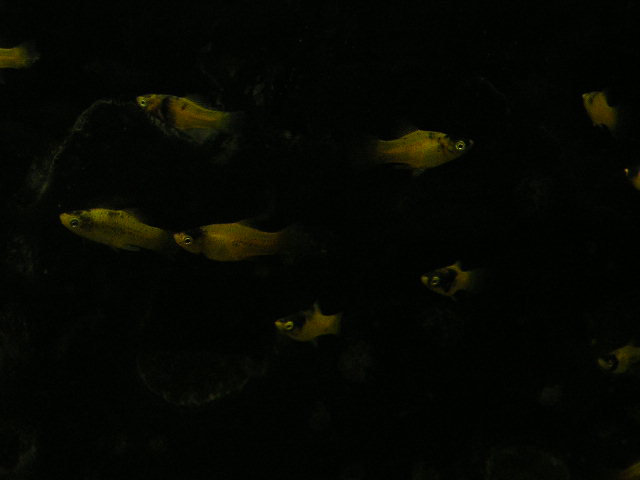 黄色地に黒が入るプラティなんです。いつだったかお休みの日にちょっと遠くの熱帯魚ショップを見に行って来た時、そこのショップで売っているのを見て、そのうちウチでも置こう!と思っていたプラティです。