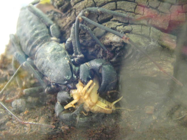 サソリモドキ、メガネ君に貰ったコオロギをおいしく召し上がっております。