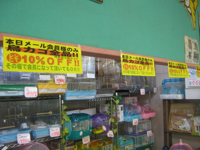 昨日予告しましたように、今回のメール会員様限定特典は鳥さんの飼い主様に朗報!!鳥カゴ全品(特売品を除き)10%OFF!!でございます!