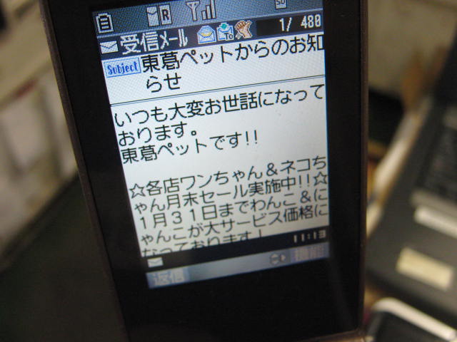 メール会員様にはだいたい週に1回、本店・柏店・流山店・新松戸店・まつど店計5店舗のお知らせが会員様のケータイ