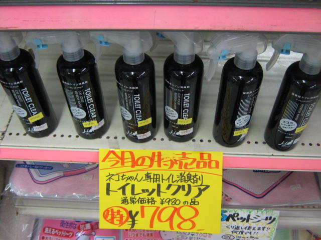 効果テキメン!ネコちゃんのトイレ専用消臭スプレーもズラッと並べました!ご覧の通り、只今この商品も特売中!!