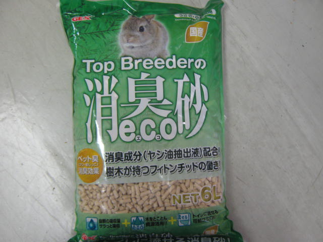 ウサギさんなどのトイレ砂「トップブリーダーの消臭砂ECO」です!通常価格¥1,080のところ、8月いっぱいは特価!! ¥880!!です!