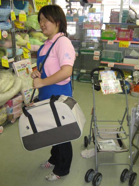 展示品をご覧になられて、気に入って頂けたら、お取り寄せ可能です。これでますます「うさんぽ」が楽しく、ラクになりますな! もちろん、ペシャーンっと折りたためますし、