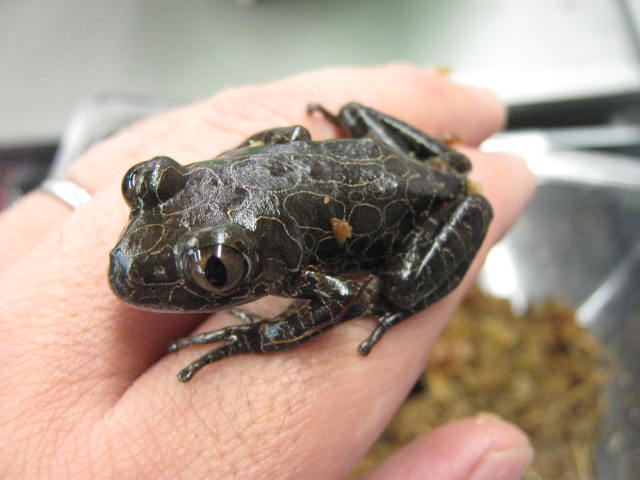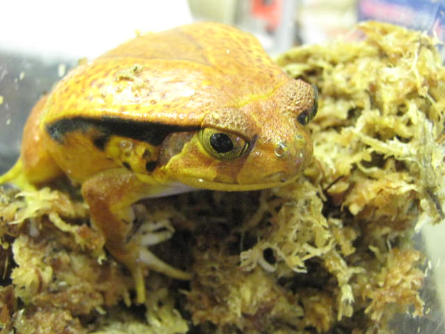 本物です。 「サビトマトガエル」。本当はもう少し赤っぽいのですが、黄色っぽく写っちゃいました