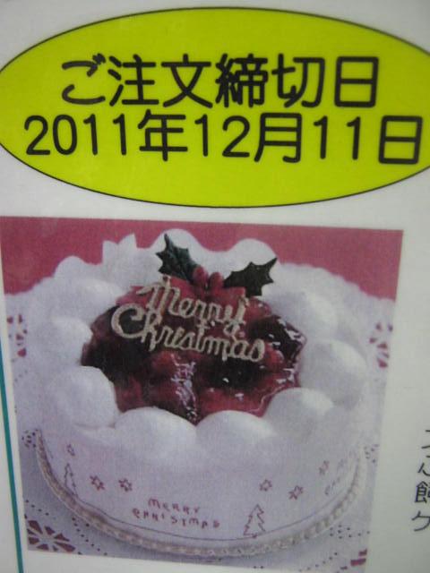 ご注文締め切り日が12月11日、ケーキのお渡し日が12月24日 午後でございます。