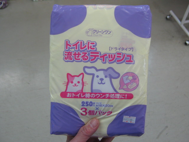 まさか素手では取りませんよね? 東葛ペットの某支店で今も働いているスタッフで、ウンチを素手で取る女の子がいまして、「それはやめなさい」とそのコに私注意したことが以前ありますが、どうでしょう?皆様、普通はティッシュとかで取りますかね? まぁ、例えばティッシュで取ったとして、ソレをどうします? ゴミ箱? それだとニオイが嫌ですよね。 では、トイレに流す。 うん、まぁ、それが一番後腐れなくって良いかもしれませんね。