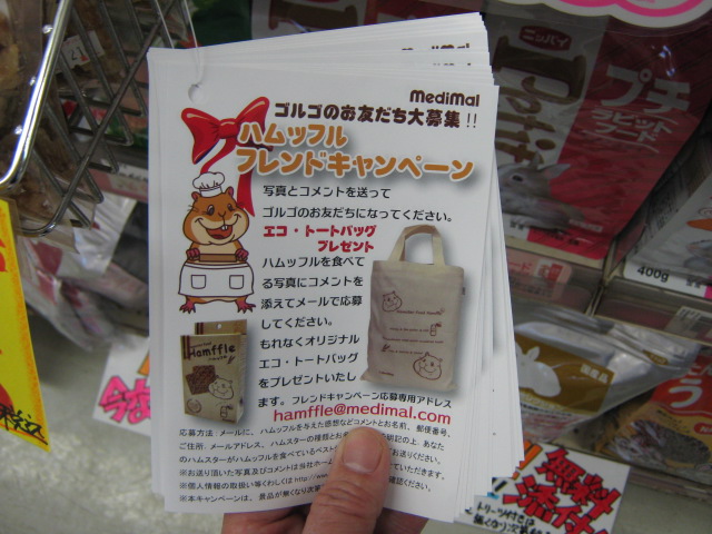 このハムッフルをお家のハムちゃんが食べているところを撮影して、コメントと一緒にメーカーにメールで送ると、先程のバッグが貰えちゃうんです!