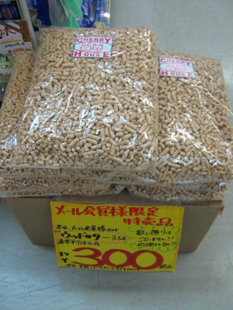 お店でも使用しているうさぎさんのトイレ砂「オリジナル・ウッドリター」、通常は1袋¥714で販売させて頂いてるのですが、今日会員様のケータイに配信されたメールの画面をスタッフにお見せ頂けるだけで、なんと!こちらが¥300で買えちゃうんです!すごいオトク!めちゃくちゃオトクでございます!先程ケータイ見せて300円で30袋も買って下さったお客様もおられました! 多くのお客様に喜んで頂けて良かったです