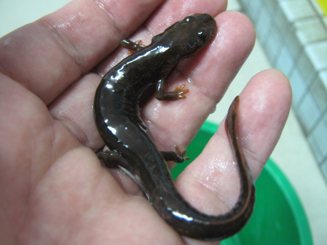 一枚目の写真、イモリちゃんを持っている方の手の方がヌルヌルテカテカで、イモリちゃんより両生類っぽく見えたりして。(メガネくんだったらゴメンネ)