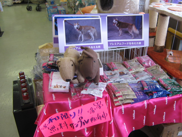 今日は高品質ドッグフード&キャットフードブランド「ユーカヌバ」の無料サンプルをメーカーさんが来て配布してくれております!