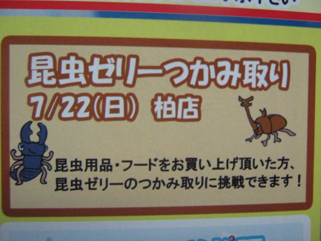 7月22日に昆虫関連商品お買い上げ頂ければ、カブト・クワガタ用のゼリーつかみ取りが出来ちゃいます