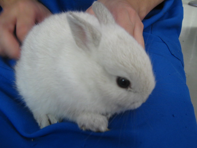 このコもドワーフラビット!珍しい色です。白っぽいグレー! このコは男の子。