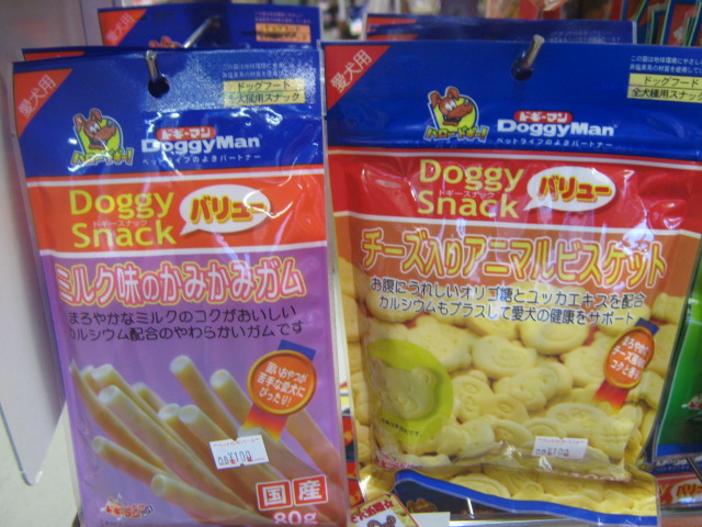 この2種類。合わせて4種類のワンちゃんのおやつは、どれも100円!!