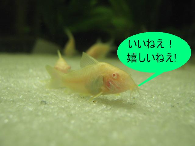 白コリドラスさんも満足げ!「白コリ」なんて簡単に呼ばれてますけど、本当は「アルビノ・コリドラス・アエネウス」っていう、哲学者みたいなお名前なんですよね。