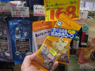 コラーゲンをロープ状に編んだもの。ネコちゃん用の「歯みがきロープ」!編まれたロープを噛むことで、歯がキレイになります! 特価!! ¥168!!