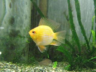 「ドイツアピスト」っていう名前で売られている熱帯魚。飼えば飼うほど色が出てきて、とってもキレイなお魚です。
