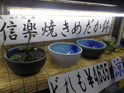 信楽焼きめだか鉢コーナー・・・おお!1つ減ってるぅ
