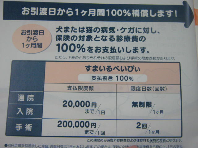 そんな嬉しい保険をなんと!無料で!!プレゼントさせて頂いております!!(※あまりいませんが、生後12ヶ月以上経っているコは対象外)