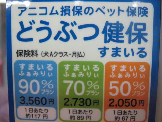 一番人気があるのは真ん中の70%プラン!3割負担でお医者さんに行ける!人間と同じプランです!