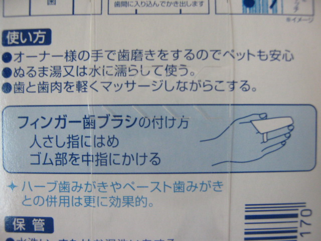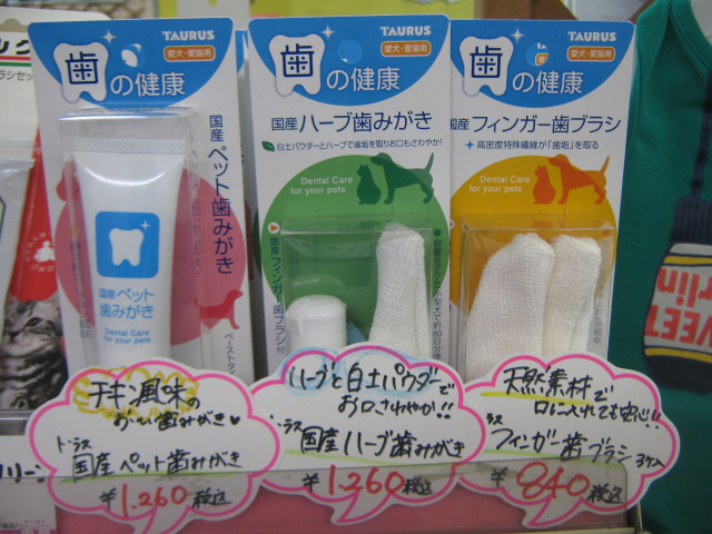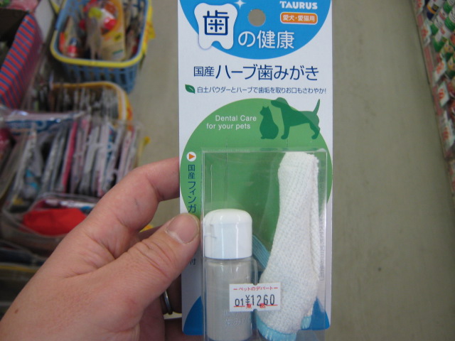 これでワンちゃんの歯や歯茎を優しくコシコシしてあげて、3秒ぐらいでもう、嫌がっちゃったらやめてあげて下さい。次の日5秒に挑戦!そして10秒、30秒、1分、3分・・・と長い時間やらしてくれるようになったら、次は歯磨き粉を付けて本格的に歯磨き開始です!