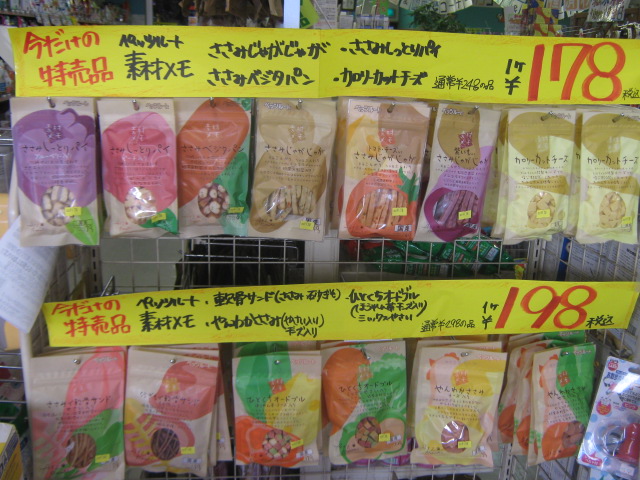 おいしいようで、いつも人気のワンちゃんのおやつ「素材メモ」¥178~¥198!!