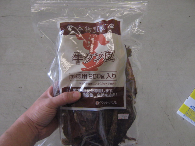 見えます?袋の中はこんな感じです。飼い主様はその気になればいつでも牛タンを食べられますが、ワンちゃんは飼い主様が与えてくれないと牛タンを堪能出来ません。是非一度、お家のワンちゃんにいかがでしょう?飼い主様は柏店で買い物して頂いた後、お隣の牛角さんで牛タンを食べましょう!!