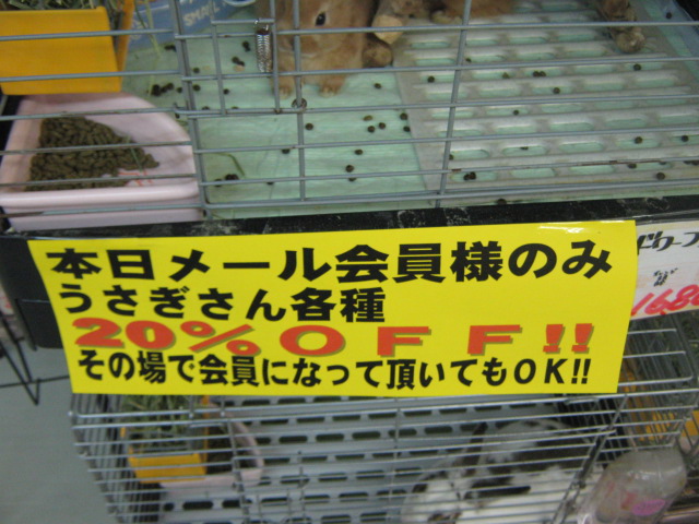会員様限定うさぎさん20%OFF!!も見逃せません