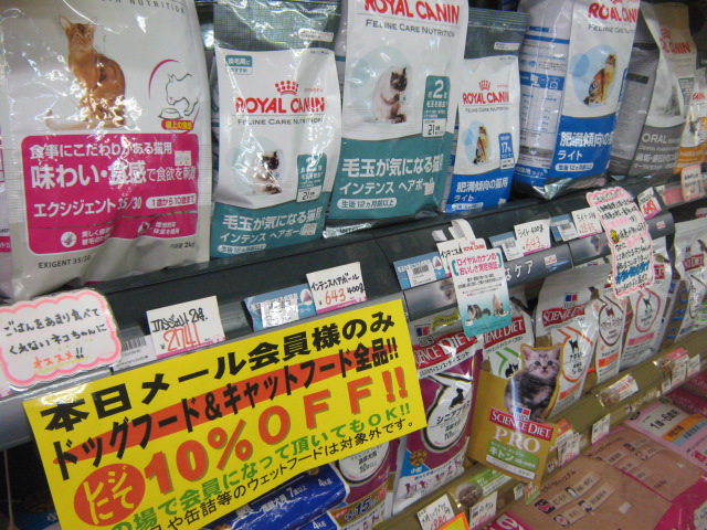 で、もうご存知だとは思いますが、柏店では今月末までドッグフード&キャットフード全品10%OFFいたします!!(特売品や缶詰などのウェットフードは対象外です)