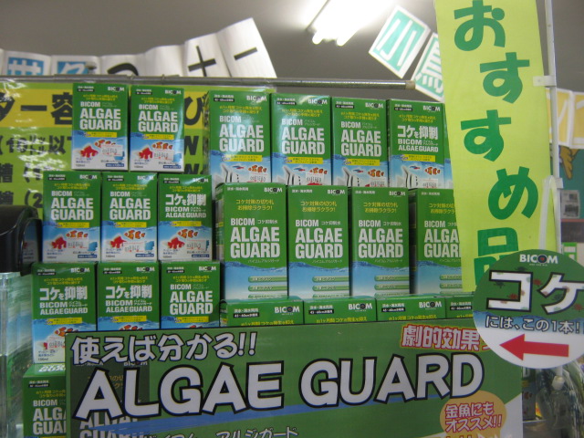 お魚コーナーは当店で使ってみて効果を確認済みのイチオシコケ抑制剤「アルジーアウト」またまた大量入荷です!!