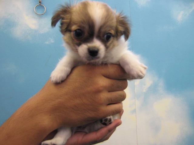 ロングコートチワワの女の子ちゃんです。まだお耳は立っていませんが、これから立ってきます。