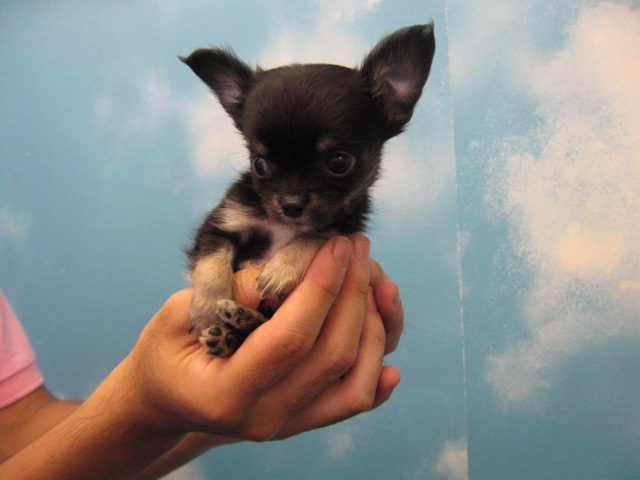 お次は、ちょっと画像だとお顔が真っ黒で分かりにくいかもしれませんが、とってもかわいいロングコートチワワちゃんのこちらは男の子です。